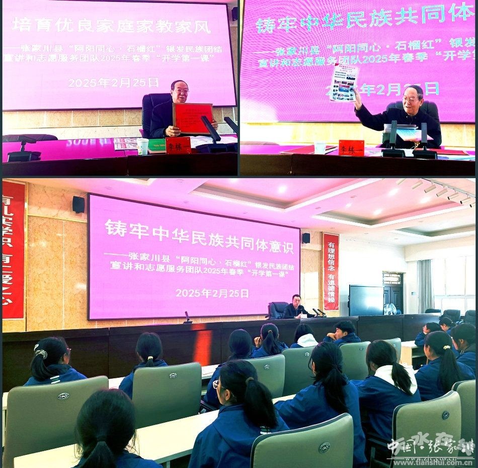 為深入學(xué)習(xí)貫徹習(xí)近平總書記對(duì)學(xué)校思政課建設(shè)作出的重要指示精神、關(guān)于家庭家教家風(fēng)建設(shè)的重要論述,講好新時(shí)代思政課和紅色黨史故事,發(fā)揚(yáng)紅色傳統(tǒng)、傳承紅色基因,切實(shí)鑄牢中華民族共同體意識(shí),厚植廣大青少年愛黨、愛祖國、愛社會(huì)主義的“三愛”情懷,近日,結(jié)合春季“開學(xué)第一課”,張家川縣委組織部、縣關(guān)工委、縣老干部事務(wù)服務(wù)中心聯(lián)合縣委統(tǒng)戰(zhàn)部、縣教育局,深入縣第一高級(jí)中學(xué)、張家川鎮(zhèn)中學(xué)等城區(qū)學(xué)校,開展紅色黨史教育、家風(fēng)傳承教育、民族團(tuán)結(jié)教育?h政協(xié)原主席、縣關(guān)工委常務(wù)副主任李棟一,縣人大常委會(huì)原副主任、縣第一高級(jí)中學(xué)返聘校長米文貴,縣委組織部、縣委統(tǒng)戰(zhàn)部有關(guān)同志參加主題宣講。