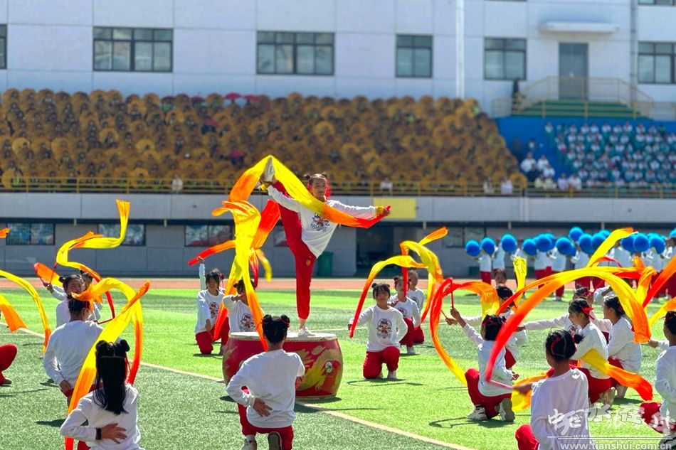 大型團(tuán)體操表演《鼓舞飛翔》《盛世芳華》精彩上演。《鼓舞飛翔》中,同學(xué)們手持鼓槌,敲響激昂的鼓點,用充滿力量的舞姿展現(xiàn)出對夢想的追逐與渴望;《盛世芳華》則以柔美的舞蹈動作、絢麗的服飾,描繪出一幅盛世畫卷,展現(xiàn)出新時代青少年的優(yōu)雅與自信。由1550名中小學(xué)生帶來的精彩絕倫的大型團(tuán)體操表演不僅展現(xiàn)了同學(xué)們的藝術(shù)素養(yǎng),更傳遞出陽光自信、積極向上的生機(jī)活力,彰顯青少年團(tuán)結(jié)、拼搏、文明、健康的新時代精神風(fēng)貌。