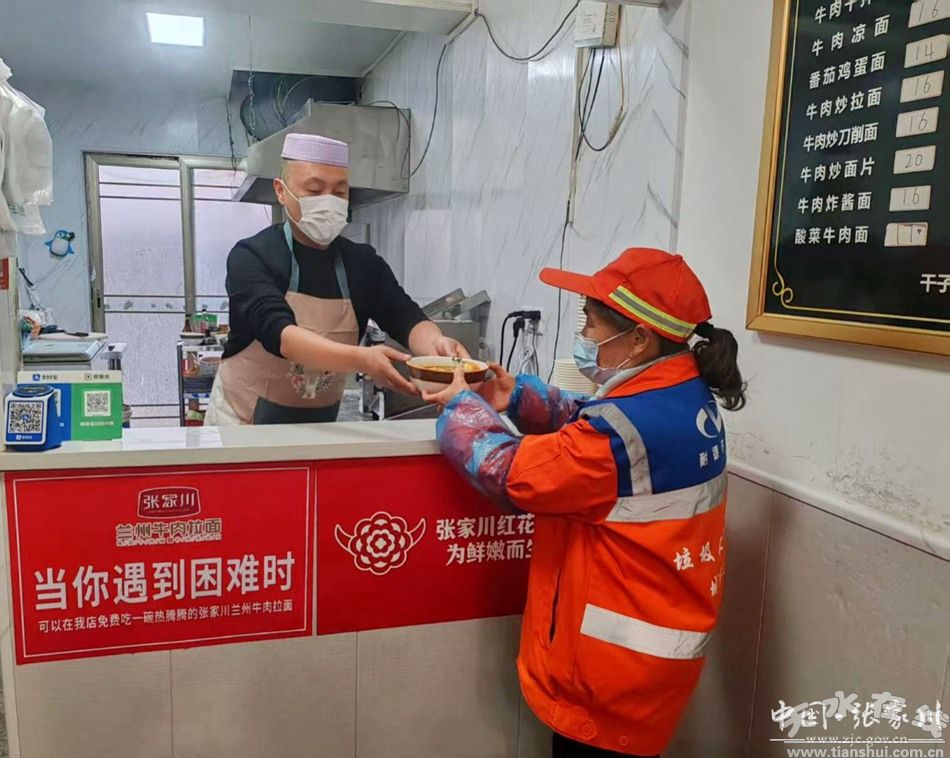 今年1月,老馬收到縣餐飲服務(wù)中心發(fā)來(lái)的暖心行動(dòng)倡議,心里那團(tuán)火頓時(shí)被點(diǎn)燃了!拔乙彩菑膶W(xué)徒一步步干起來(lái)的,知道人在難處時(shí),一碗熱飯意味著什么!闭f(shuō)干就干。老馬在店門(mén)上貼出了紅底白字的告示,并鄭重承諾:“當(dāng)你遇到困難時(shí),可以在我店免費(fèi)吃一碗熱騰騰的‘張家川·蘭州牛肉拉面’”。據(jù)了解,老馬連續(xù)幾年都會(huì)去當(dāng)?shù)鼐蠢显汉蛢和@好赓M(fèi)為老人和小孩做拉面、包餃子。可以說(shuō)張家川的群眾以樸素行動(dòng)搭建起民族交往交流交融的舞臺(tái),讓團(tuán)結(jié)暖流浸潤(rùn)全國(guó)各地,繪就各民族同心筑夢(mèng)的美好圖景,讓民族團(tuán)結(jié)之花綻放在煙火日常。