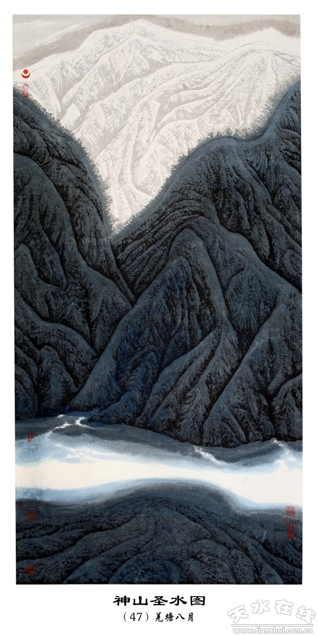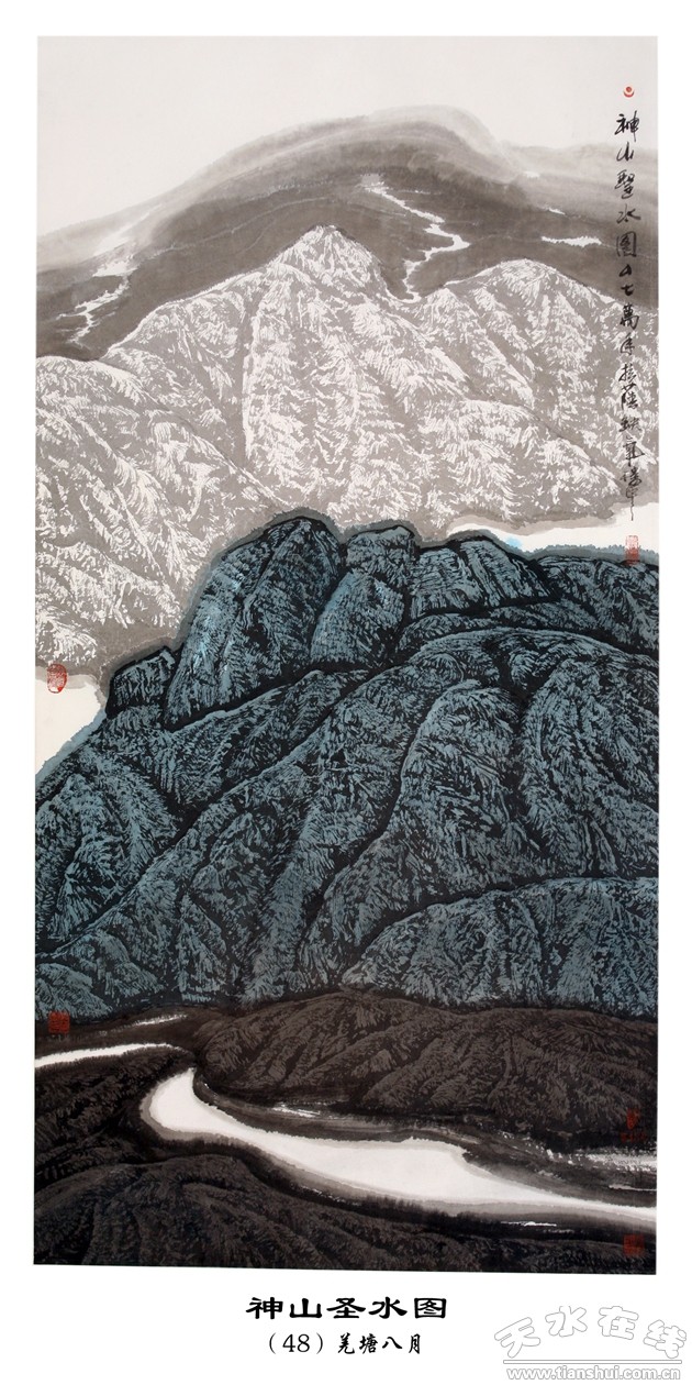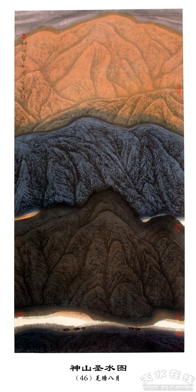 劉萬(wàn)年的西藏山水畫,有鮮明強(qiáng)烈的地域特征;新穎別致的表現(xiàn)手法;正大陽(yáng)剛的民族氣度;雄渾壯闊的時(shí)代風(fēng)貌;肅穆淡遠(yuǎn)的宗教情懷;深邃沉靜的哲理思考;虔篤完美的神性境界,是中國(guó)當(dāng)代山水畫苑中的一朵奇葩。