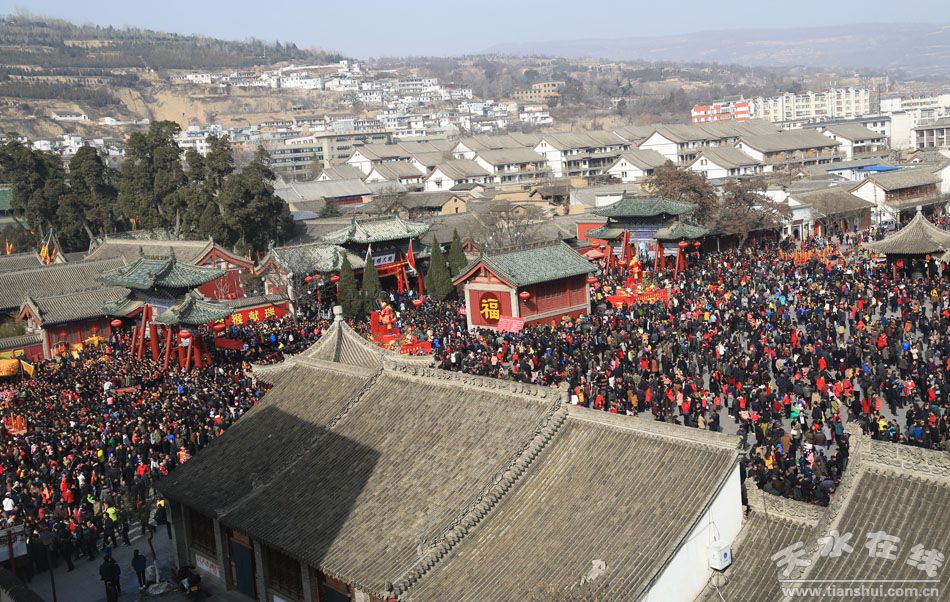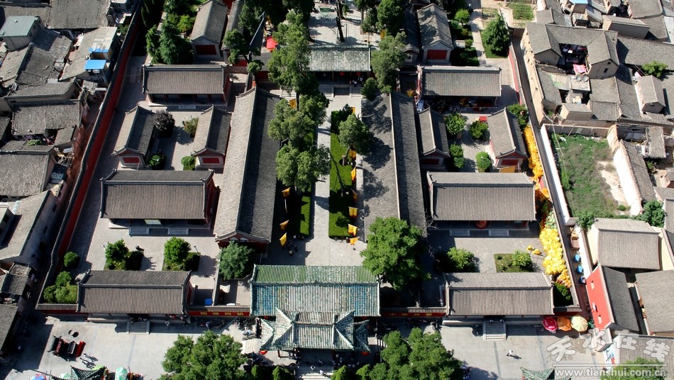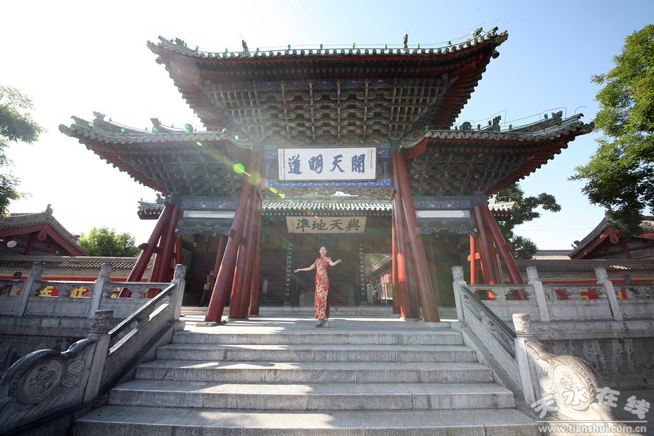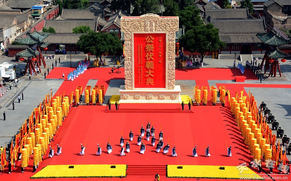 在天水市西關(guān)有一座專門祭祀中華民族偉大的人文始祖伏羲氏的宗廟建筑群,現(xiàn)存建筑群建于明成化十九年(公元1483年),總占地面積35000平方米,是目前我國保存最為完整、建筑年代最早的祭祀伏羲氏的廟宇。因?yàn)榉苏貑⒘酥腥A文明,被稱為“龍祖”,歷史上一直位列三皇之首,天水伏羲廟被人們稱為“中華第一廟”。伏羲廟本名“太昊宮”,俗稱“人宗廟”,也稱“人祖廟”。伏羲廟為全國重點(diǎn)保護(hù)單位,國家AAAA級(jí)旅游景區(qū)。