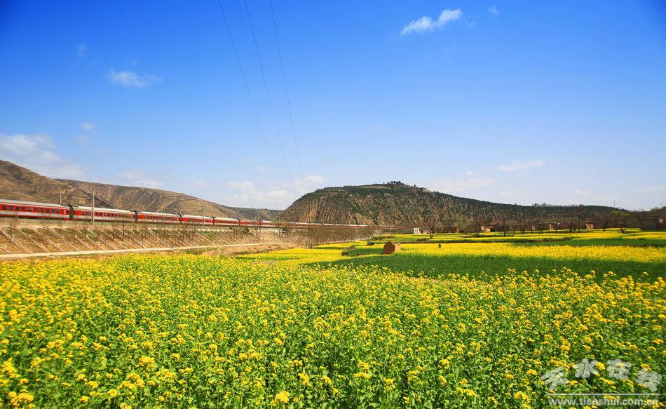 由于天水的氣候適宜冬小麥以及冬油菜的播種。清明前后,冬小麥反青拔節(jié)一片片蔥綠,金黃的油菜花盛開鑲嵌其中,丘陵、河谷高低錯(cuò)落有致,景色美不勝收!