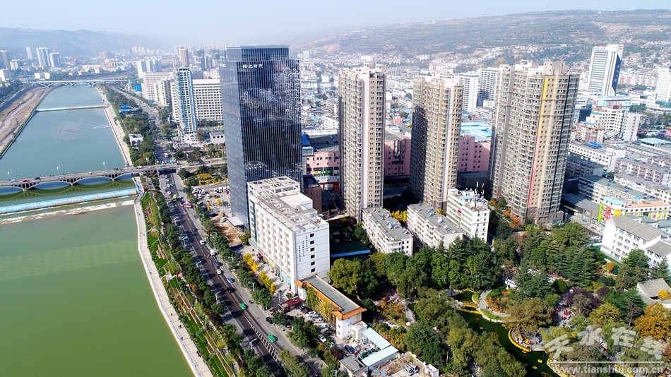 ▲圖為天水在線無人機(jī)2018年10月26日航拍的藉河風(fēng)情線