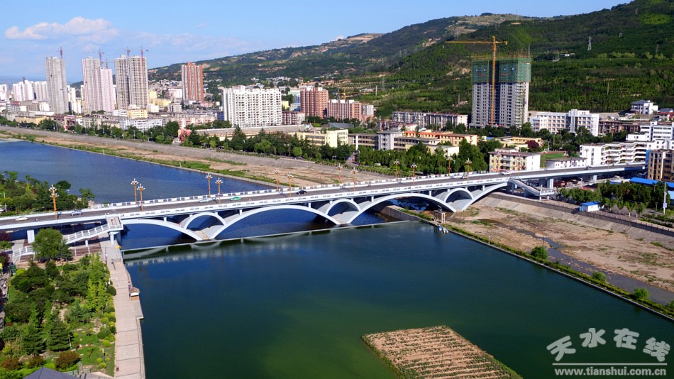 ▲2016年7月19日,天水在線無(wú)人機(jī)航拍小組對(duì)今年上半年建成通車(chē)的雙橋藉河大橋進(jìn)行航拍。