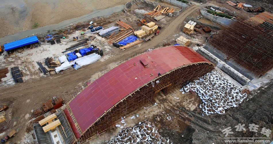 ▲2014年11月7日下午,天水在線無(wú)人機(jī)航拍小組對(duì)正在建設(shè)中的雙橋大橋工程進(jìn)行航拍。