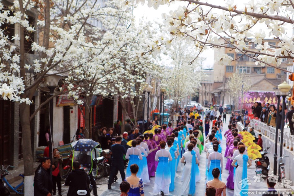 三月的天水,因?yàn)橛裉m花開而驚艷了一座城。人們紛紛聞香而動(dòng),走進(jìn)“玉蘭古巷”(秦州區(qū)自由路)賞花游玩。游人們?cè)谫p花逛古巷名居的同時(shí),紛紛被吃沿街的美食吸引。這里的美食不僅有“漿水面”、“臊子面”、“洋芋煎餅”、“扁食”等天水當(dāng)?shù)靥厣〕裕有年輕人喜愛的川味火鍋等美食。