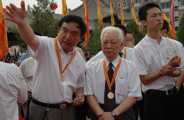 (2001年在伏羲大典現(xiàn)場,與省人大常委會主任盧克儉合影。)