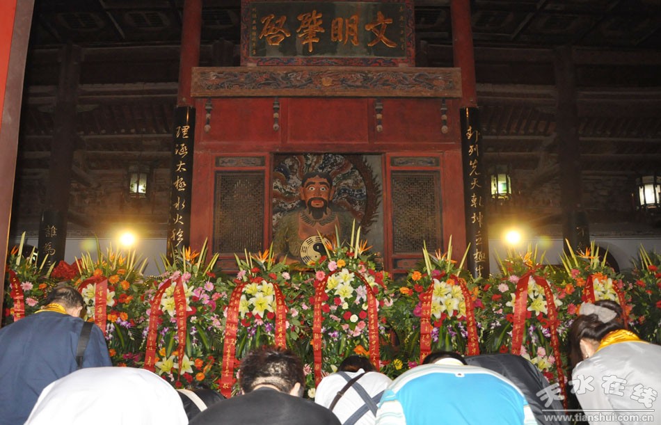 2011年6月22日上午,天水市伏羲祭祀廣場(chǎng)古樂(lè)悠悠,氣勢(shì)恢宏;伏羲廟內(nèi)古柏掩映,莊嚴(yán)肅穆。由甘肅省人民政府主辦,天水市人民政府、甘肅省文化廳承辦的2011(辛卯)年甘肅省公祭中華人文始祖太昊伏羲大典在這里隆重舉行。海內(nèi)外中華兒女近萬(wàn)人匯聚一起,傳承中華文明,公祭人文始祖,表達(dá)對(duì)太昊伏羲的虔誠(chéng)和敬仰。