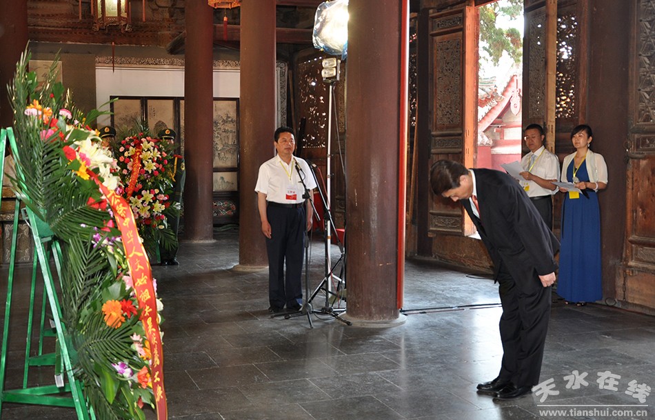 惟公元二〇一四年六月二十二日,中華兒女,匯聚天水,謹(jǐn)以鮮花、果饌、雅樂之儀,虔敬之心,致祭于中華民族人文始祖太昊伏羲。