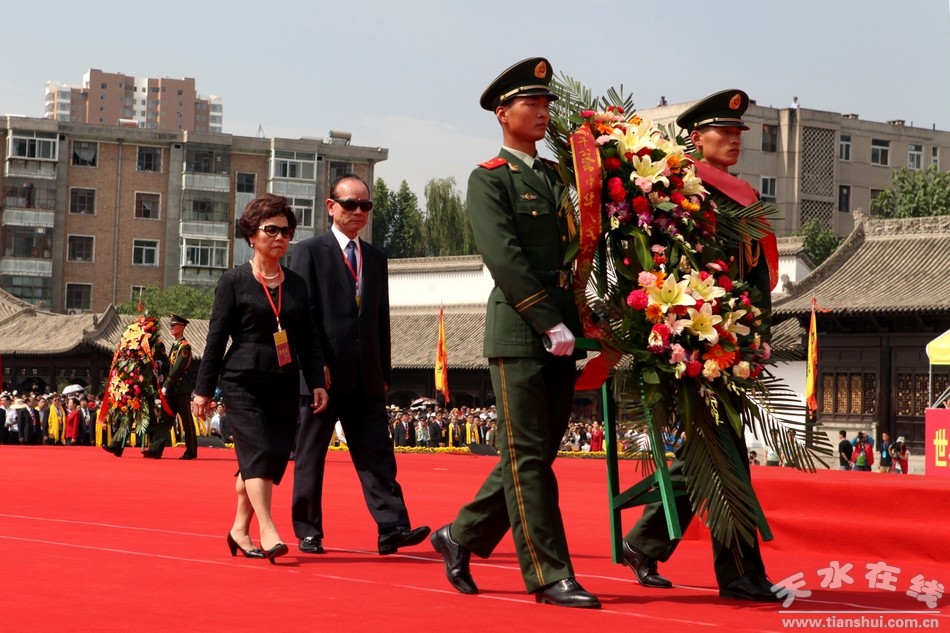 今年的公祭大典由國務(wù)院港澳辦、國務(wù)院臺(tái)辦、中國僑聯(lián)和省政府共同主辦。天水公祭現(xiàn)場(chǎng)有世界著名華人社團(tuán)僑領(lǐng)、港澳臺(tái)代表;國內(nèi)文化名人及知名專家學(xué)者代表、旅游團(tuán)體等共約2萬人參加。臺(tái)灣政要和各界代表近5000人在臺(tái)灣大天宮與天水伏羲廟參加公祭。