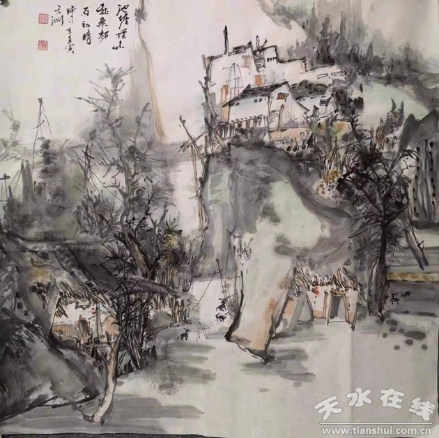 張俊平《山上人家》69x69cm