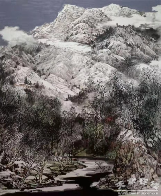 張聽(tīng)雨《山頂積雪野梅香》200x200cm