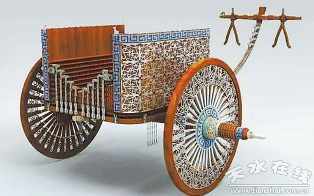 看著一輛輛大小各異,裝飾不同,奢華奪目的復(fù)原馬車,一件件華貴、精美的車馬飾品配件,我從心底里發(fā)出深深驚嘆的同時(shí),不禁聯(lián)想到,2500多年前,生息在天水隴山附近的能工巧匠門已經(jīng)自如的將山林中生漆制成黑、紅之色髹漆,用于裝飾,廣泛應(yīng)用在高擋工藝產(chǎn)品之中。今天,名揚(yáng)四海的天水雕漆,追溯歷史,應(yīng)該是老祖先傳承下的制漆工藝,改進(jìn)傳承,源遠(yuǎn)流長(zhǎng),為今人所用,真值得我們加倍珍惜和繼續(xù)不斷傳承。