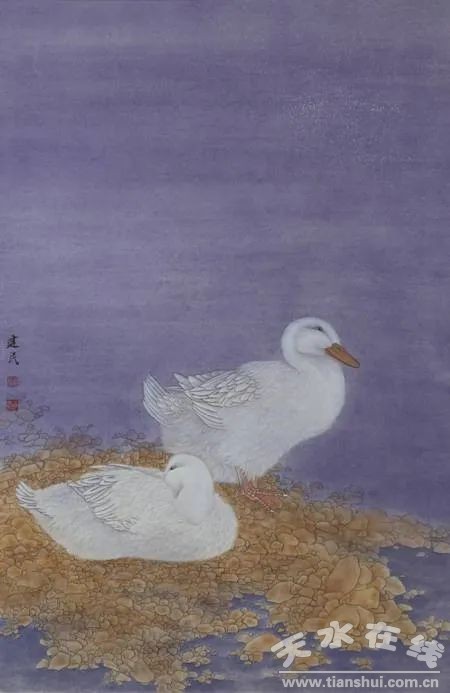 工筆畫是以精謹(jǐn)細(xì)膩的筆法描繪景物的中國畫表現(xiàn)方式。其創(chuàng)作過程相對(duì)復(fù)雜,一般是先畫好稿本,然后在宣紙或絹帛上用筆勾勒,繼而隨類敷色,經(jīng)過“三礬六染”,從而取得形神兼?zhèn)涞乃囆g(shù)效果。一般說來,一幅完整的工筆畫作品,有如坐禪般地要精雕細(xì)刻十?dāng)?shù)天,大的作品需要幾個(gè)月乃至大半年。建民入選(獲獎(jiǎng))國展的幾幅作品,大都經(jīng)過半年、大半年時(shí)間才完成,可見其功用。讀建民的繪畫作品,我以為,大致可用三個(gè)詞組來作概括:清新質(zhì)樸,淡雅寄情,力求個(gè)性。清新質(zhì)樸者,不恪守舊法,不拽洋習(xí)外,平實(shí)而生動(dòng),含蓄而雅致;淡雅寄情者,非濃墨重彩,非臆造板滯,寄情而寓理,淡雅而清新;所謂力求個(gè)性,即在學(xué)習(xí)傳統(tǒng)的同時(shí)敢于逾越,敢于打破取材、構(gòu)圖、敷色等方面固定的繪畫語言,不拘泥于舊法陳習(xí),努力結(jié)合當(dāng)代藝術(shù)審美,從自己大量寫生體驗(yàn)的積累中擷取現(xiàn)實(shí)創(chuàng)作素材,精當(dāng)取舍,準(zhǔn)確構(gòu)圖,力求創(chuàng)造出合乎時(shí)代審美要求的全新樣式,使每一個(gè)畫面都能表達(dá)出新穎的審美情愫,從而形成獨(dú)見精神的個(gè)性風(fēng)格。在這方面,建民的確跨出了艱難的一步,正如張南山評(píng)言,“當(dāng)眾多畫家還在案頭依然富貴牡丹、梳理鳥雀羽毛的時(shí)候,畫家對(duì)于花鳥畫自然狀態(tài)的描寫表明了畫家堅(jiān)定的立場(chǎng),關(guān)注自然,關(guān)注生活。這種‘自然屬性’雖然不是畫家對(duì)自然界原生物態(tài)的占有與顯現(xiàn),而是在精神層面上的重新設(shè)定與關(guān)照。”正是如此,建民才取得了常人難以企及的成功,并成為當(dāng)下畫壇公認(rèn)的佼佼者。