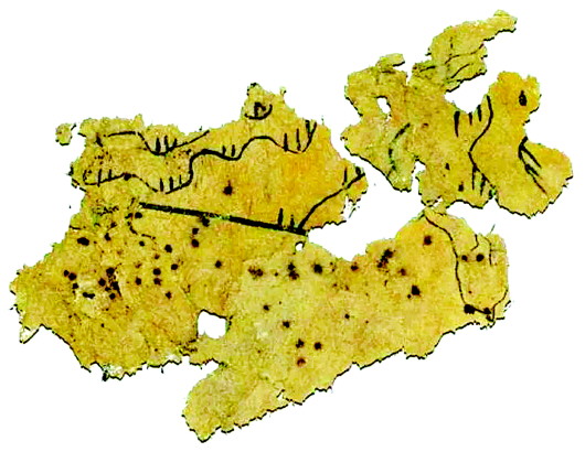 放馬灘戰(zhàn)國秦墓出土的第二個“中國第一”,是畫在木板上的地圖。它反映的地域范圍較小,可能只包含秦武公十年(公元前688年),秦人打敗和趕走邽戎,在當(dāng)?shù)亟⒌倪灴h(這是秦國歷史上首建的兩個縣之一。另一個是冀縣,治所在今甘肅甘谷縣東)。從地圖學(xué)的角度看,它卻是已知中國最早的第一幅地圖。