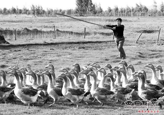 張掖市甘州區(qū)明永鄉(xiāng)西大湖灣濕地成為放養(yǎng)大雁的樂園。近年來,甘州區(qū)3萬多畝濕地得到有效保護(hù),附近村民充分利用濕地發(fā)展大雁、虹鱒魚等特色養(yǎng)殖,社會(huì)經(jīng)濟(jì)效益明顯。本報(bào)記者 曹義成 攝