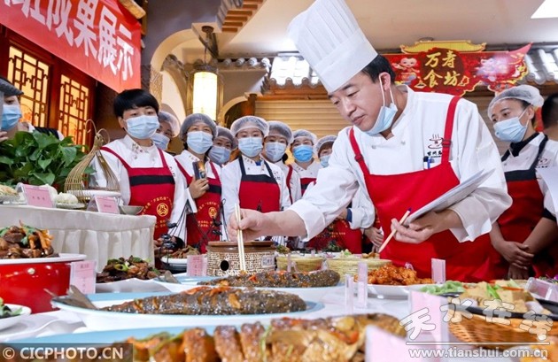 2020年12月3日,甘肅張掖100多名“農(nóng)家樂”和農(nóng)家飯店的巧廚娘們經(jīng)過多日培訓(xùn)后,集中展示了在農(nóng)家巧娘廚藝培訓(xùn)班學(xué)習(xí)成果,制作了10道熱菜、10道涼菜、10道主食,接受市民和評委檢驗(yàn)。